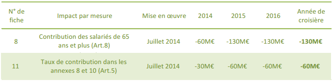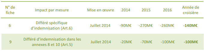 Ces deux mesures sont « les plus efficaces » conjointement, elles représentent 240M€, soit moins de 7% du déficit. Soulignons que la version « intermittente » de ces mesures a été temporairement suspendue.