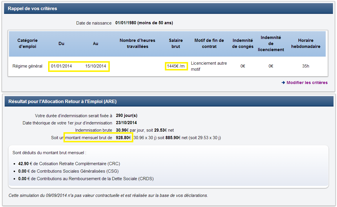 Les droits sont versés après l’épuisement d’un délai de différé calculé sur la base des salaires précédant : il s’agit d’une pénalité selon laquelle une forte rémunération peut entraîner une période de chômage non indemnisable ; depuis cette année une forte rémunération est définie comme supérieure à 16€ horaire (1.68 fois le SMIC).