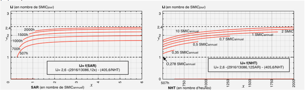 Révision de la formule de calcul de l’indemnité : réduction de l’écart entre les faibles et les fortes indemnités, introduction d’un plancher au SMIC (actuellement il n’y a pas vraiment de minimum) et d’un plafond à 2.6 fois le SMIC (soit d’indemnisation 123€/j au lieu de 140€/j): ces chiffres sont indicatifs et sont datés de la date de rédaction du document.